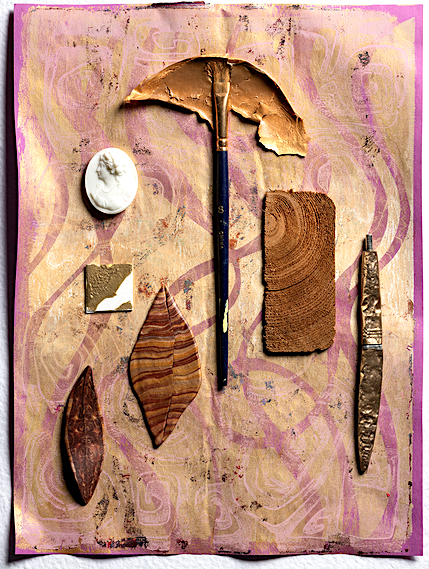 She also pays significant attention to finding little-valued items that are discarded on the streets, parking lots, roadsides, and leftovers from her studio activities. These found items and fragments then affirm interrelated values when she combines and arrangements them into collage formats. The “Artifact” series provokes questions on what is lost and discarded, our “use and discard” culture, and the artist’s own open-ended aesthetic decisions that are not “pre-visioned”.