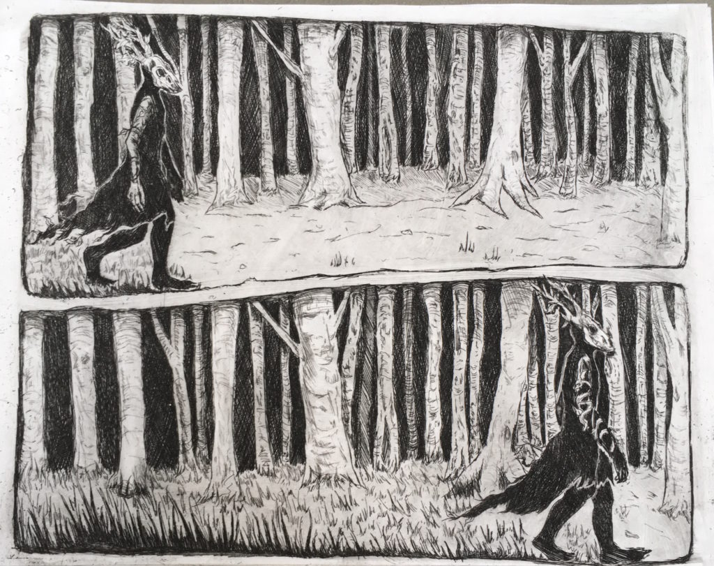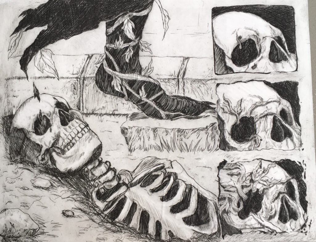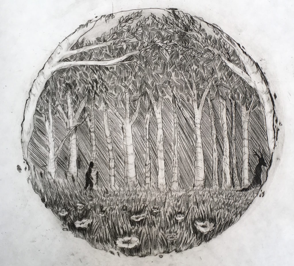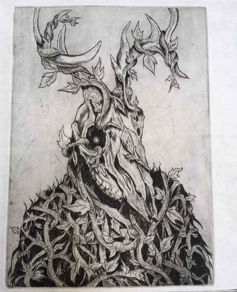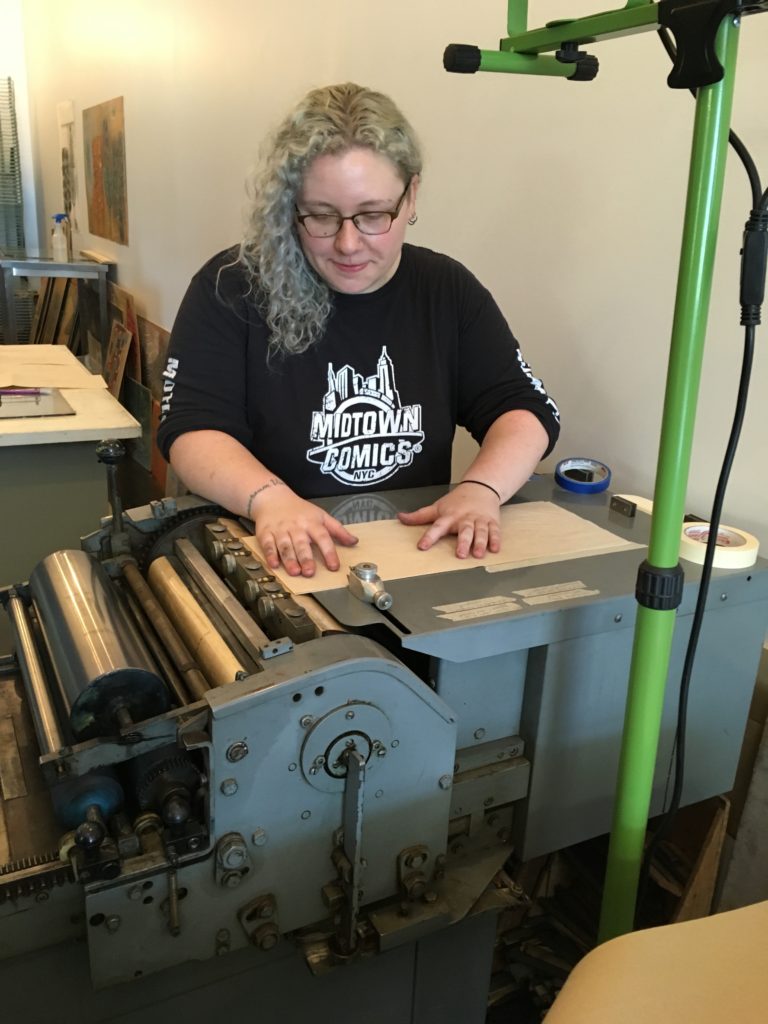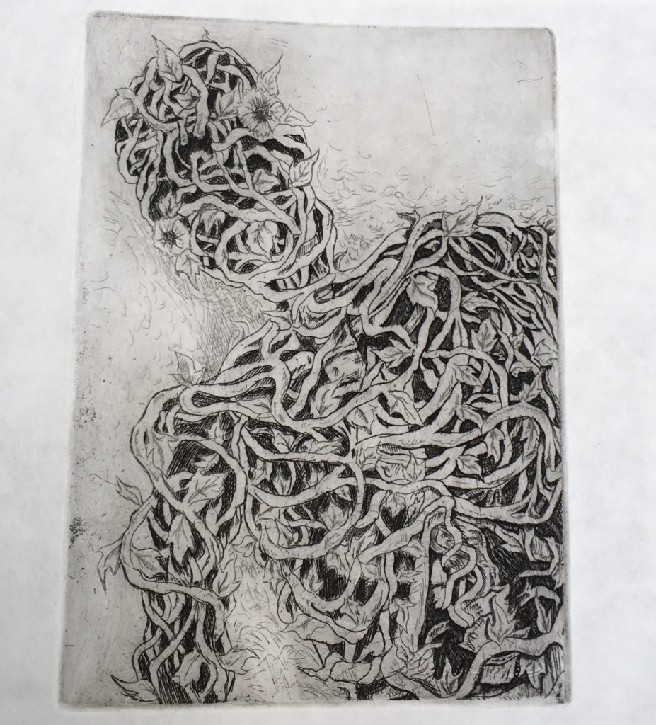 Taryn is a senior art student at University of Cincinnati, and had research funding for her residency in August. At Constellation Studios she created 8 etchings, made handmade paper for the title page, with a letterpress printed text, and put all together in a hand-bound book, all in 2 1/2 weeks of intense concentration. Great project! Here are a few highlights.
