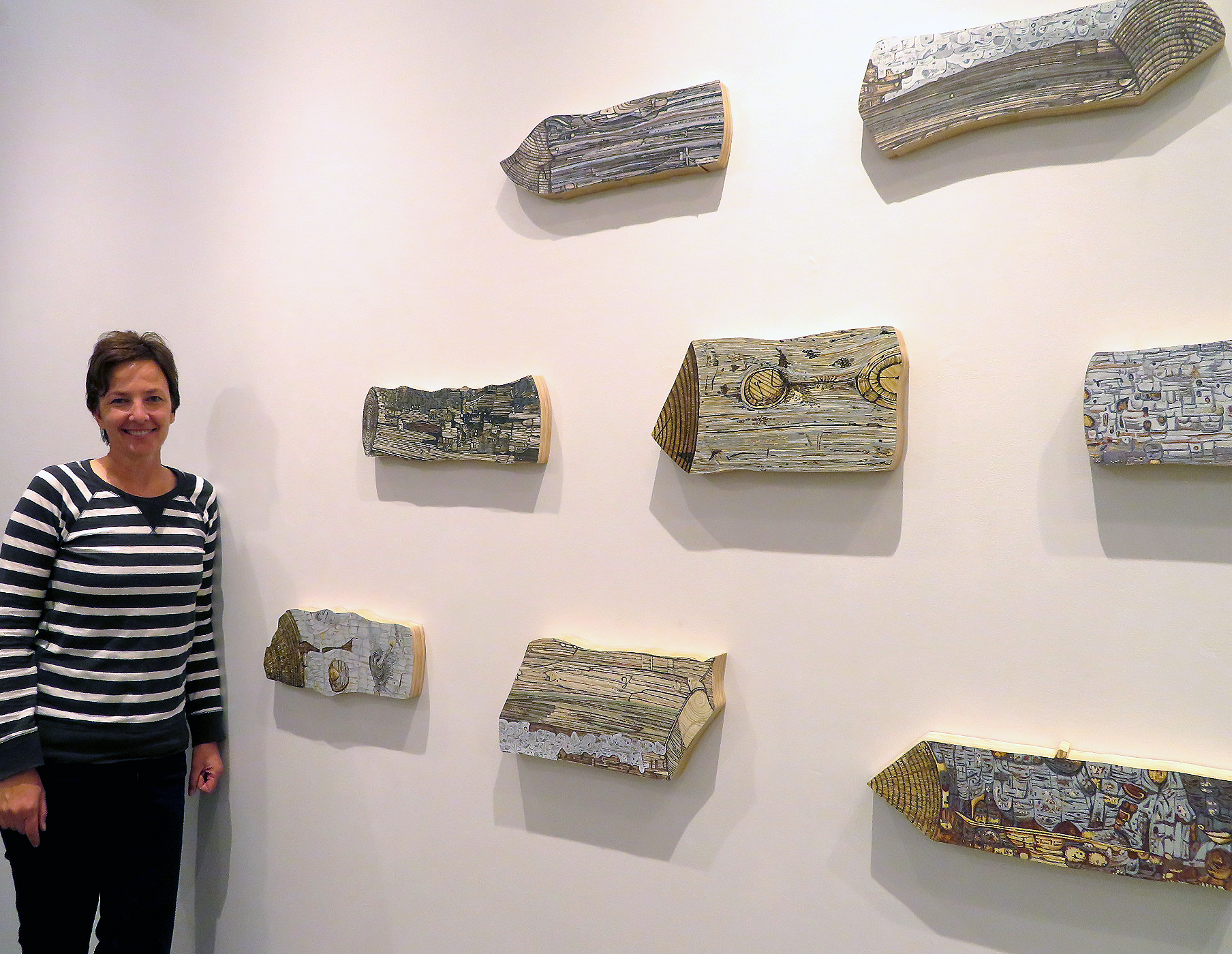 These artists use wood for carving sculptural objects and as a matrix block to print from onto paper. Their work in art-making is, in essence, to deconstruct this “once living” material, and then reconstruct the life force of the universal tree via their images and embedded meanings. Carved panels, prints, and installation lead us through their creative actions onto raw material – actions that can be seen as violent, necessary, ritualized, and even reverent.