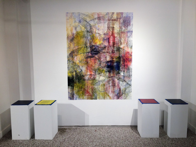 Worob will present his own print works on paper in a concurrent exhibition.   He has developed this innovative casting process and DIY attitude to create with stamping and rollers for large scale printing impact of a myriad of symbols and signs.
