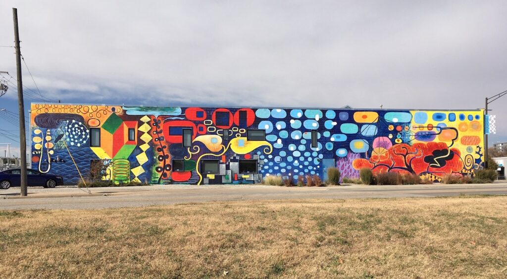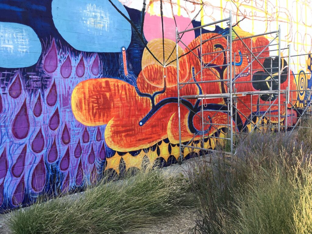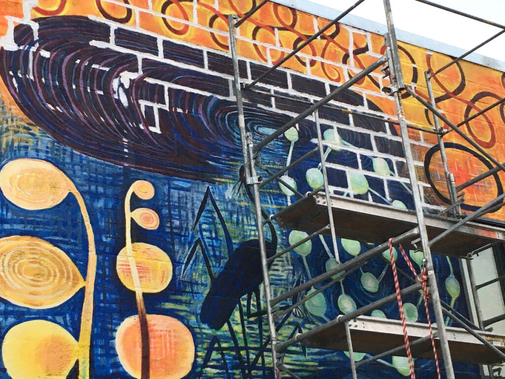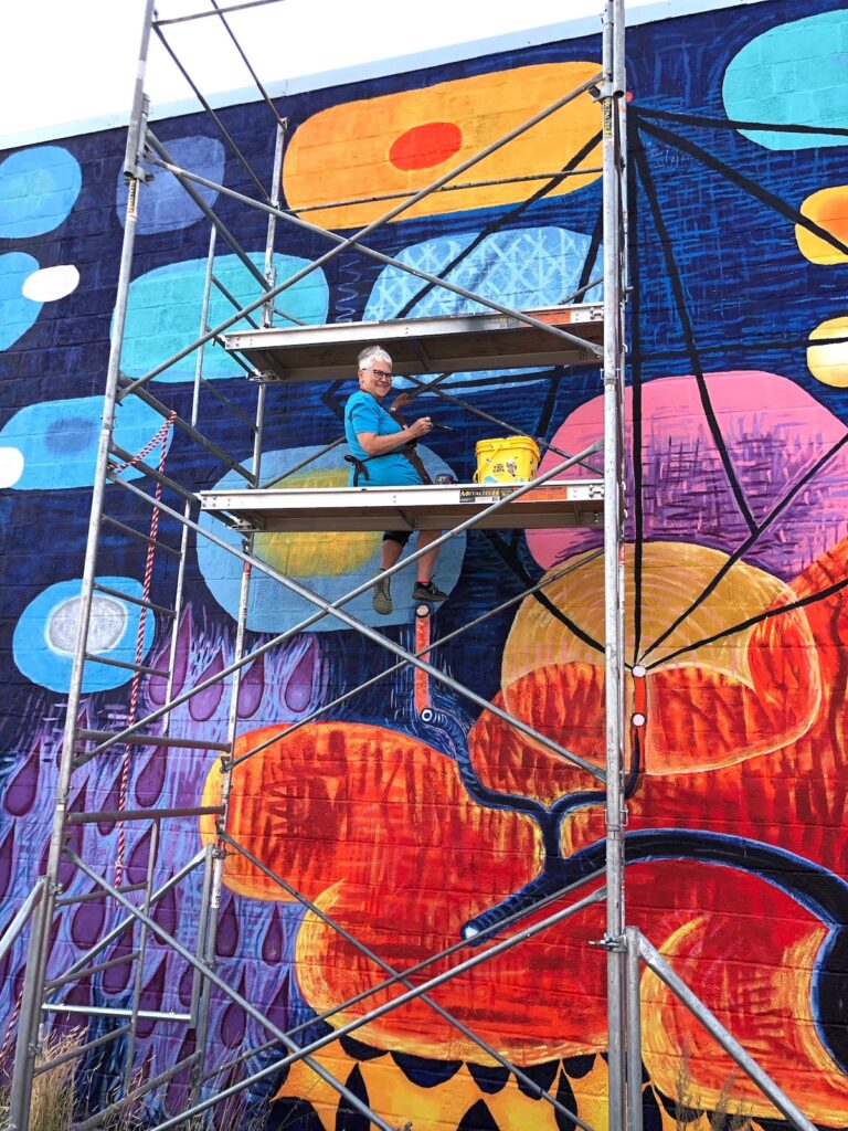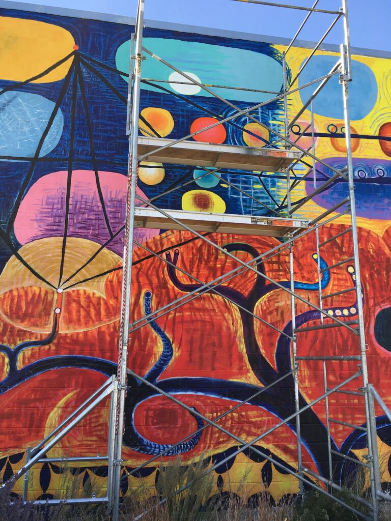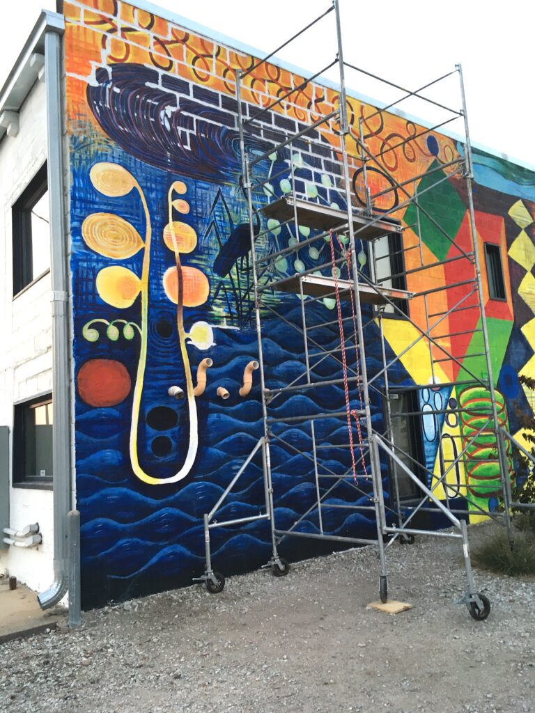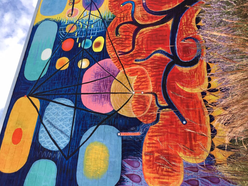 This October saw the completion of the mural repair and refresh with a new grand design! All is meant to integrate and compliment with colorful new imagery and themes. Check it out….impossible to miss this as an entry to downtown Lincoln!