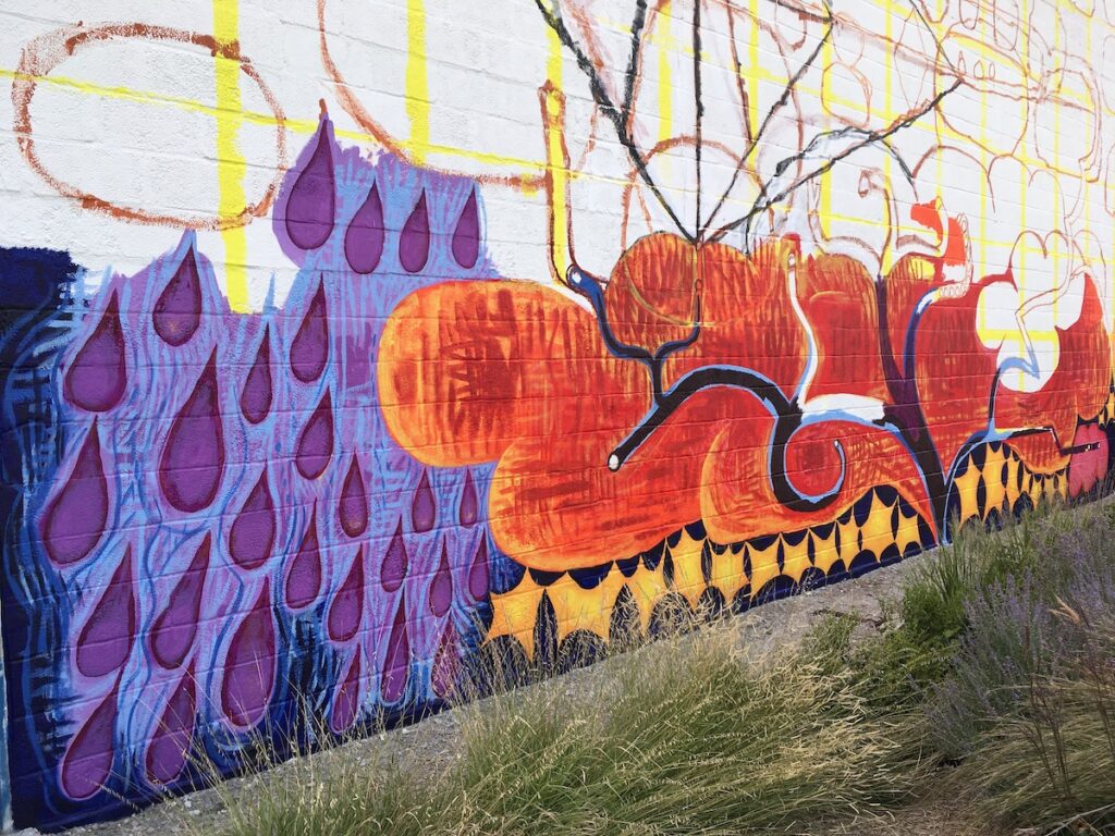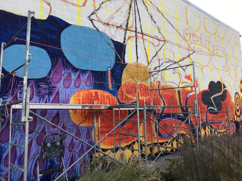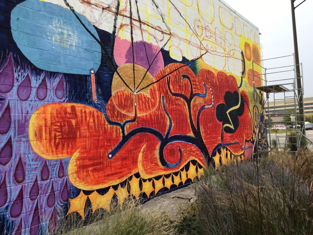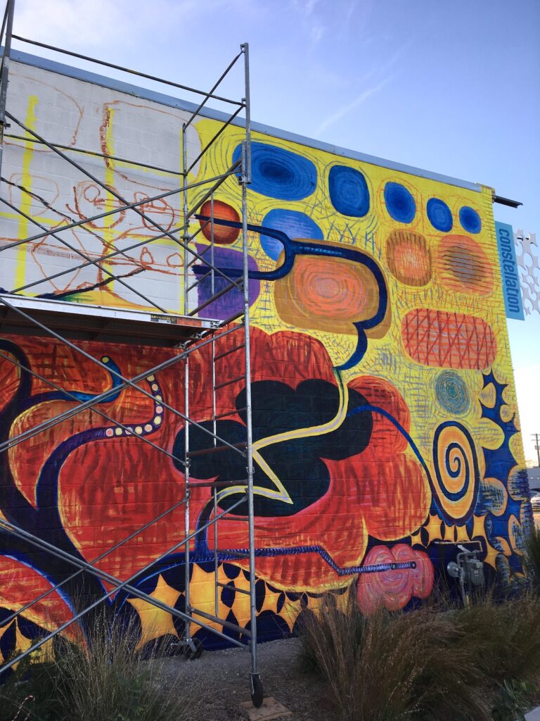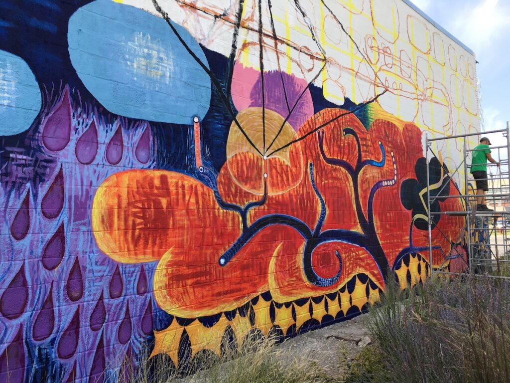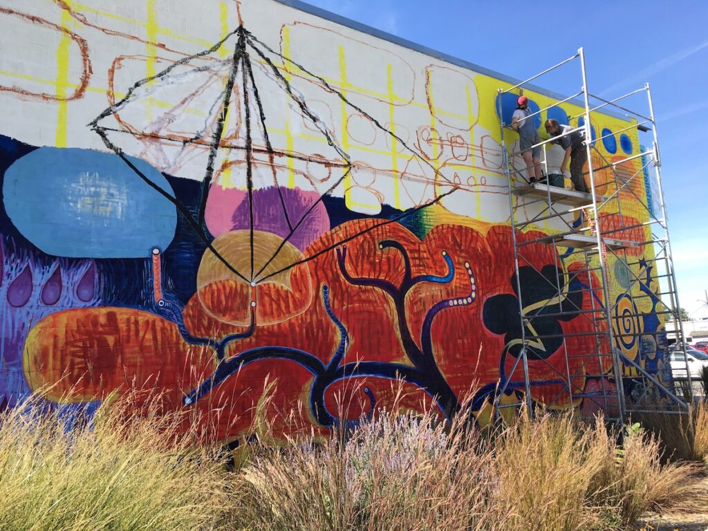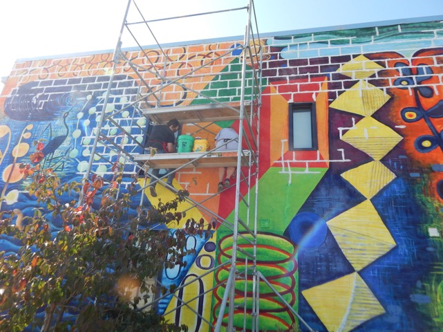 This October saw the completion of the mural repair and refresh with a new grand design! All is meant to integrate and compliment with colorful new imagery and themes. Check it out….impossible to miss this as an entry to downtown Lincoln!