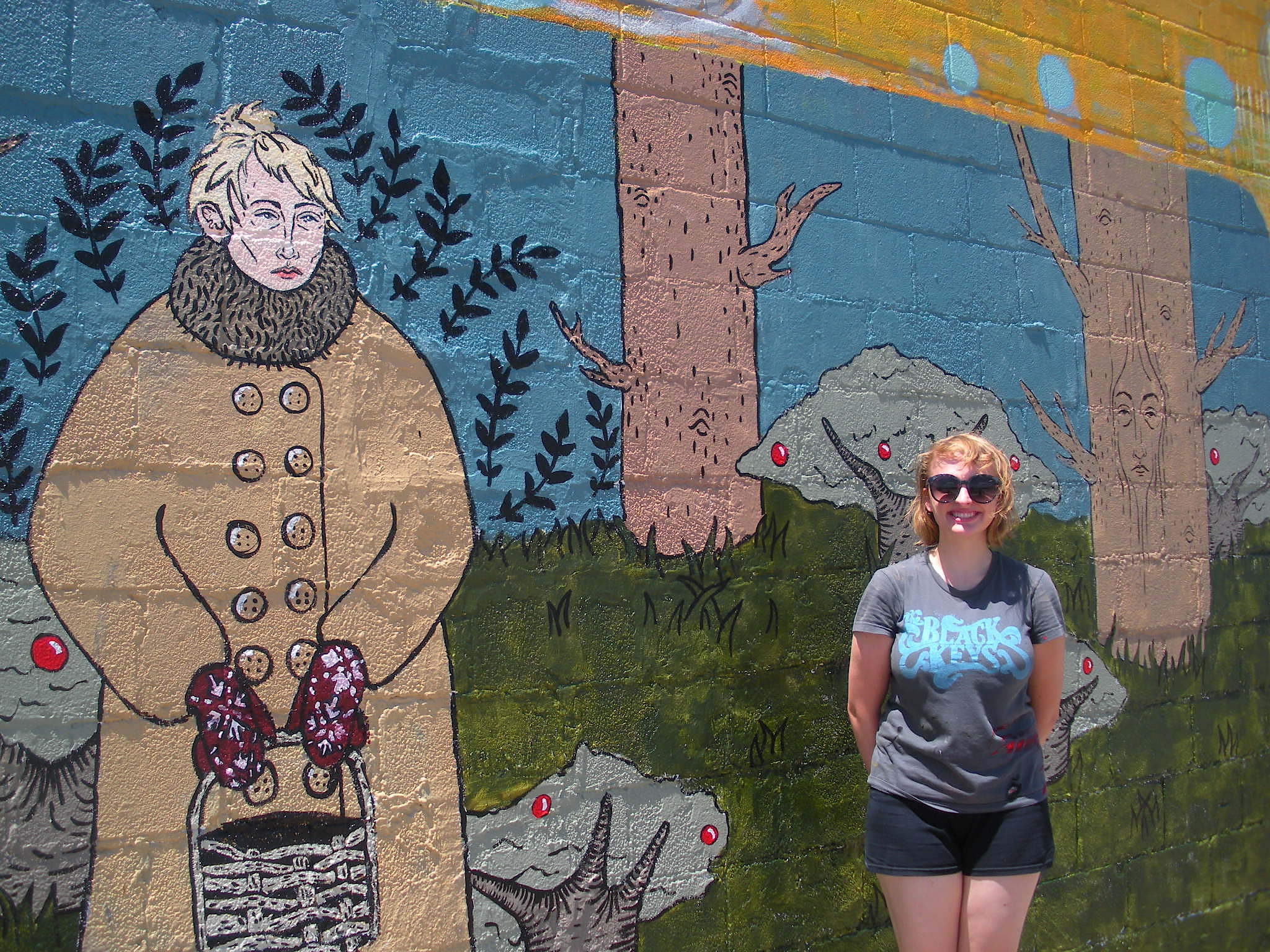 Thanks to Madison for painting a great mural this summer! This mysterious narrative intrigues us with a fantasy world of larger -than-life figures that seem to stand in the garden plantings. Madison has a distinctive style and dedication to the her visual story-telling. You can join this ongoing story with a great photo op in front of this mural!