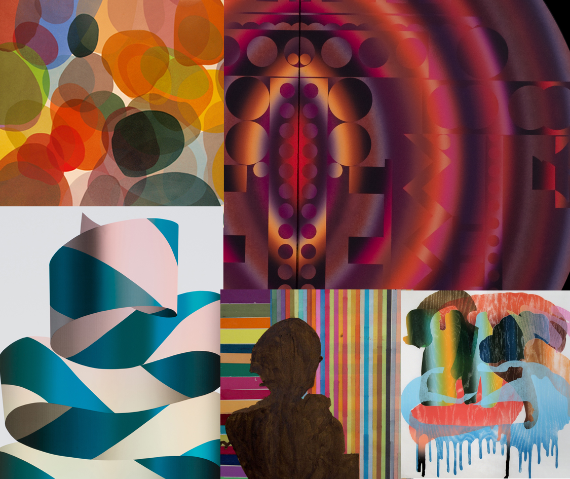 Constellation Studios presents Rainbow, an exhibition of vibrant color and the study of its printed effects.   Printmakers effectively use the blending of colors with “split fountains” and “rainbow rolls” for continuous gradations that belie the flatness of plate or block – that imply printed kitsch and bravura, creating dynamic spatial illusions. The printing of luminous layers create complex patterns, or individuated swatches of color steps – suggesting the multiplicity of individual parts adding to the whole, as a social metaphor or visual phenomenon. This exhibition is a glowing symphony of color at play and work in contemporary form. Nationally recognized artists include: Mildred Beltre, Vermont; Laura Berman, Missouri; Jeffrey Dell, Texas; Tim Dooley and Aaron Wilson as Midwest Pressed, Iowa;   Juergen Strunck, Texas.