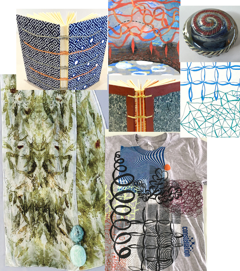 Visit the Constellation Studios sales page for unique and handmade items: prints, hand-bound books, decorative boxes, printed t-shirts, natural botanical dyed silk scarves, handmade paper art. Perfect for gifting and collecting!