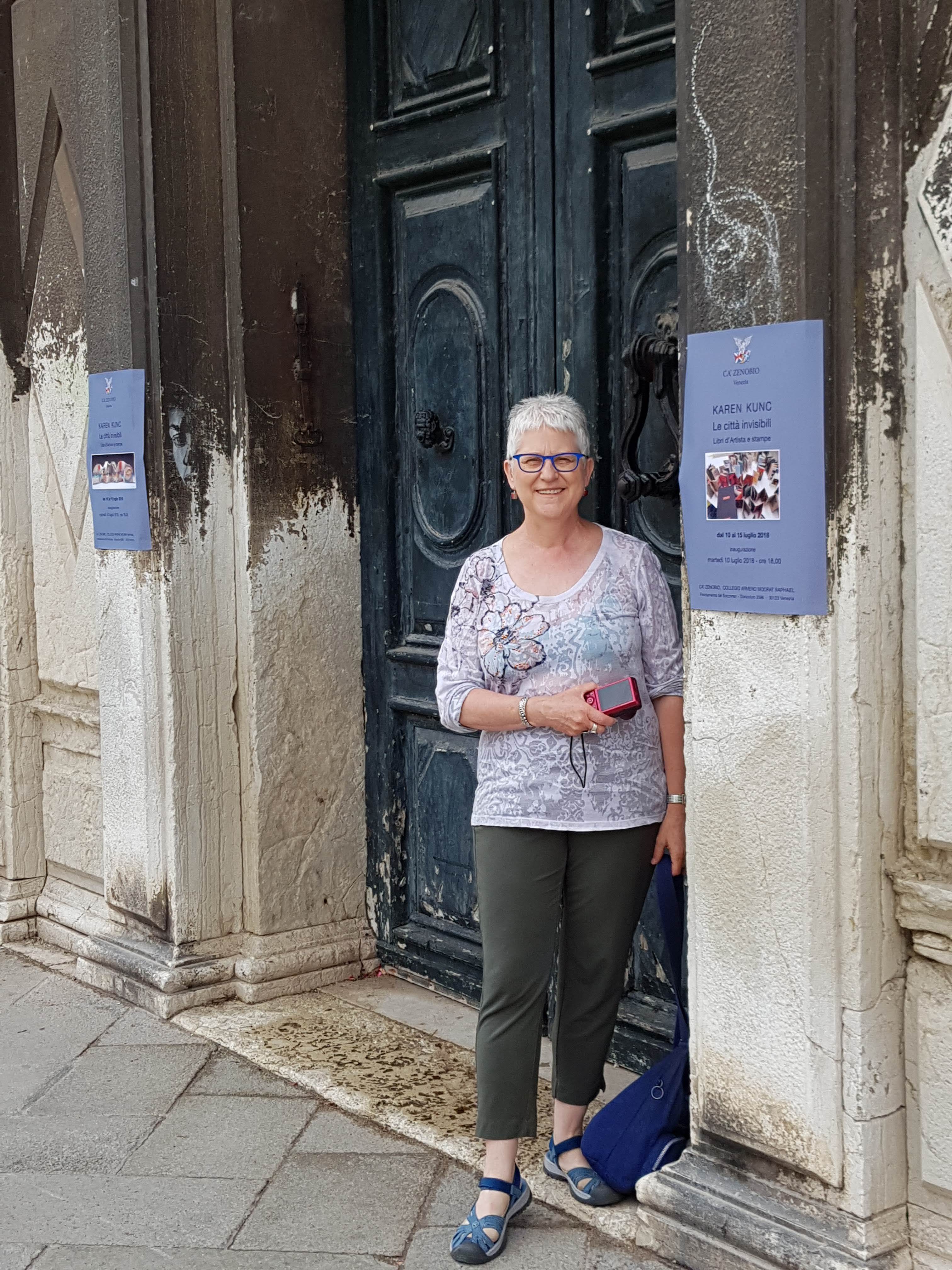 The Invisible Cities Collaborative Book Project, organized in 2016 by Constellation Studios, was exhibited in Venice, Italy, July 10 – 15, 2018. Many local and regional artists, students, and studio members and friends contributed art for this project. Karen Kunc, owner and director of Constellation Studios, and UNL Professor of Art, presented the book, and also exhibit her own artist books and prints. The exhibition was hosted by Amor del Libro Studio, at the Palazzo Ca’ Zenobio, Venice, Italy, with an opening reception on Tuesday July 10.