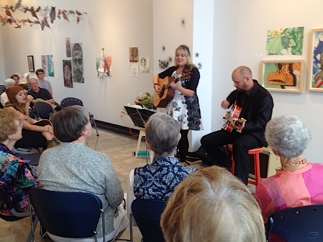 A fun evening was shared with 40 – 50 guests for the Happy Hour House Concert, featuring artist/songwriter Wendy Jane Bantam and musician Marty Steinhausen.