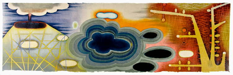A revelatory exhibition into the process by which artist Karen Kunc creates her woodcut prints. Doodles become drawings, carved woodblocks transfer ink to paper, color sequences and evolutionary process enable her powerful visual expression to emerge.