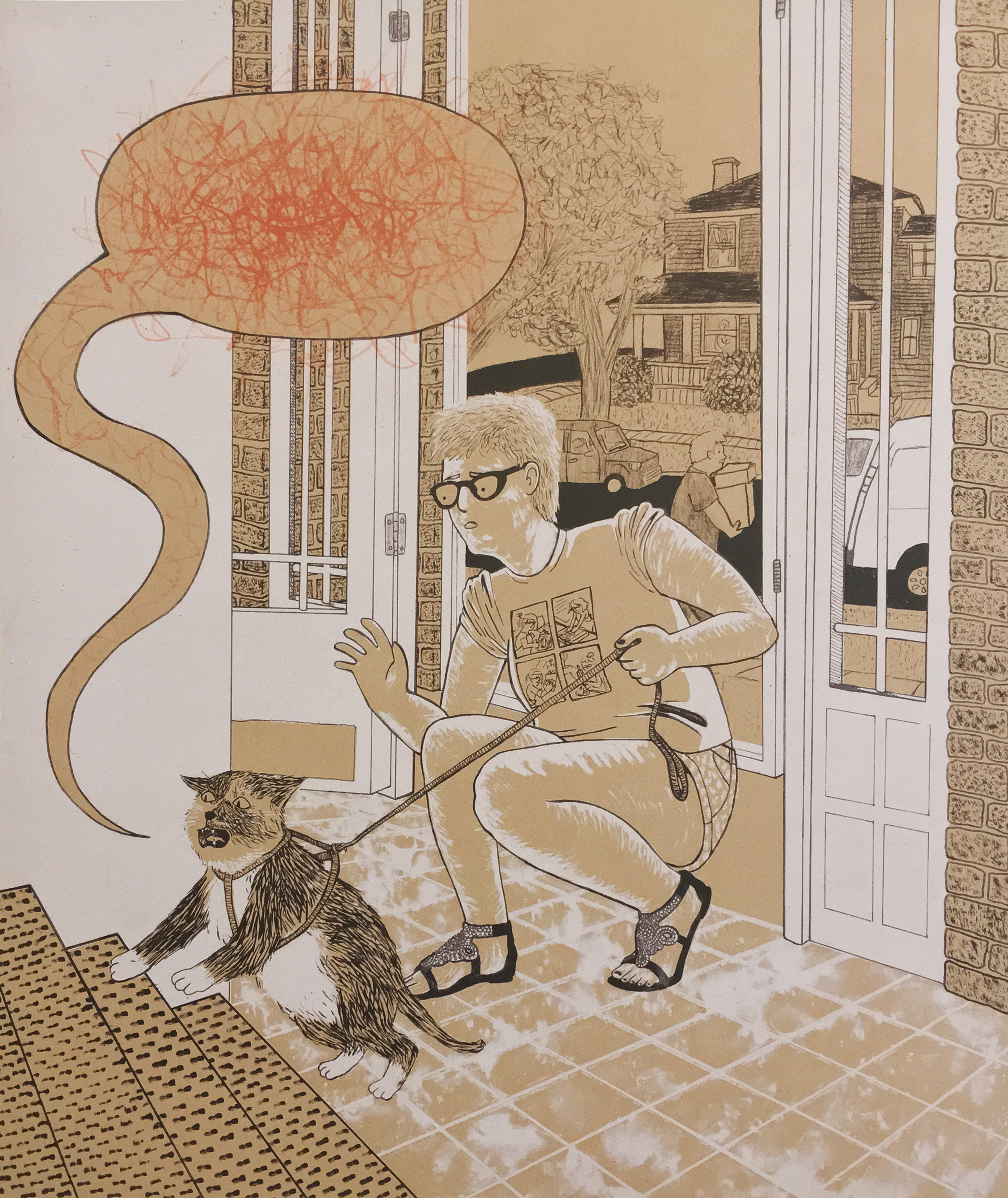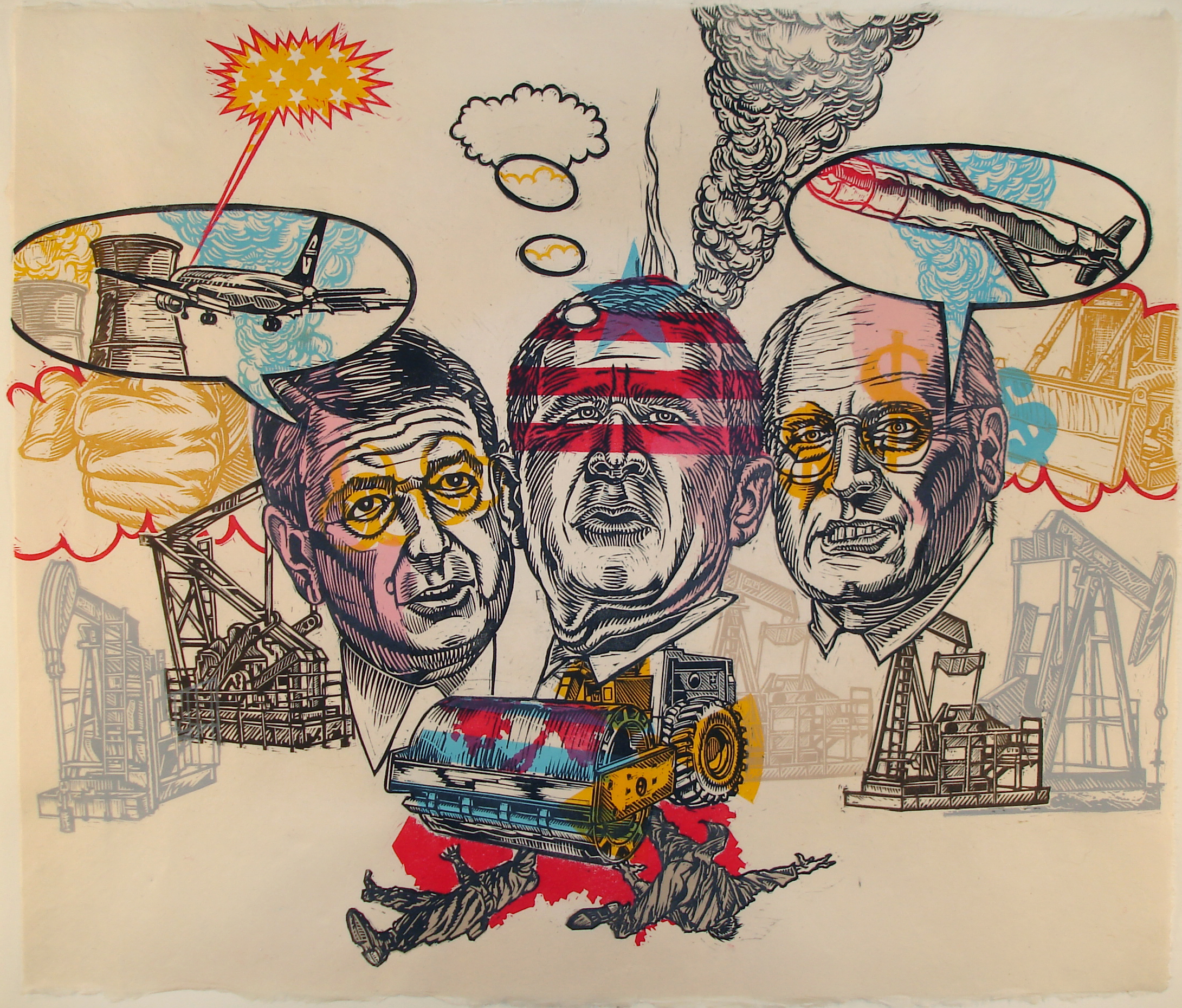 This invitational show presents the link between graphic cartooning, tattoo design, classic comics, manga, anime, detailed grotesque ornamentation and fantasy drawing styles that are sources for expression and distillation by contemporary print artists today.    This popular “low art world” crosses generations and genres, usually outside the fine art world, and artists respond with irony, visual puns, horror vacui compositions, and technical bravura.  This exhibition celebrates the spirit of imagination and skepticism, creative play, and topical messages.   Works in print media, book forms and drawing will be included.