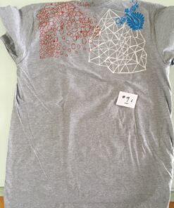 Cotton T-shirt with multiple screenprinted colors & patterns, printing front & back.
