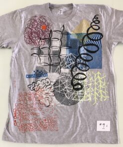 Cotton T-shirt with multiple screenprinted colors & patterns, printing front & back.