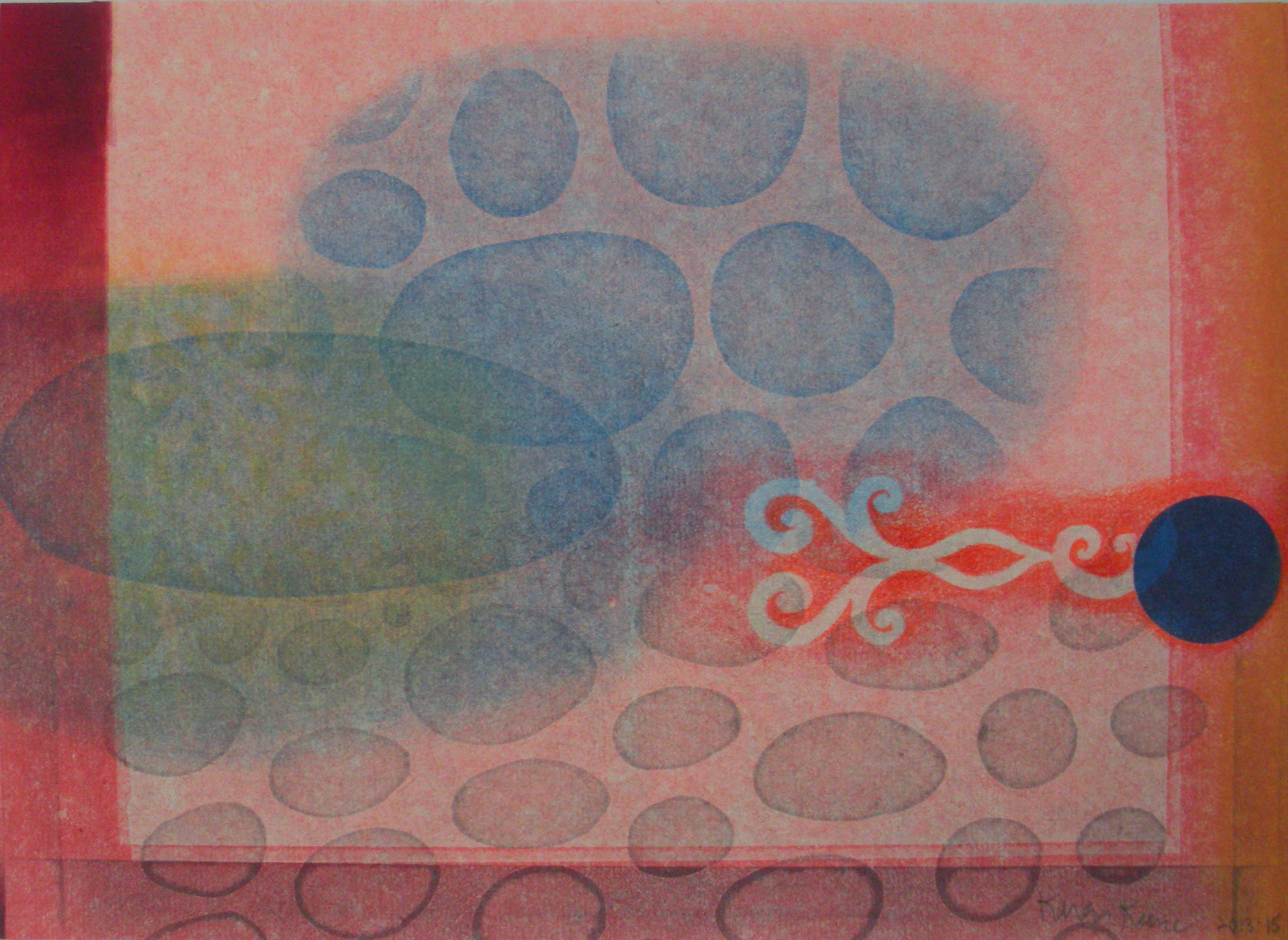 Using watercolor & waterbase inks, a variety of innovative print processes will give unique one-of-a-kind prints, and a series will develop. The processes will allow for colorful layers for surprises and richness, with spontaneity and experimentation. We will also play with pressure printing, a unique printed “capture” of textures and patterns from stencils.