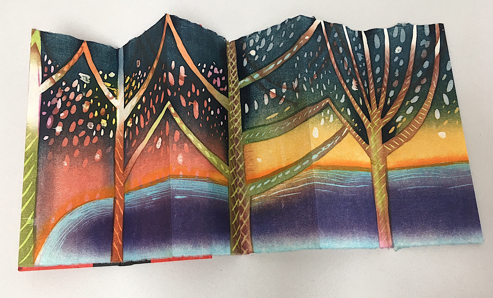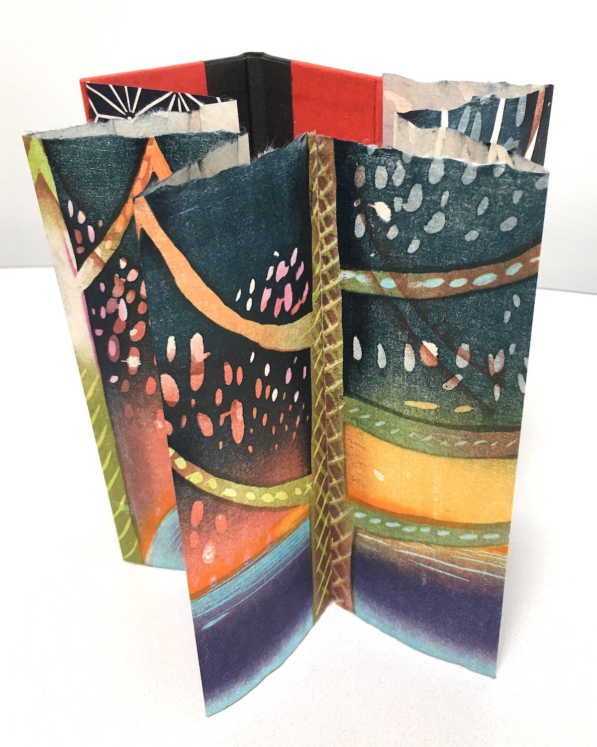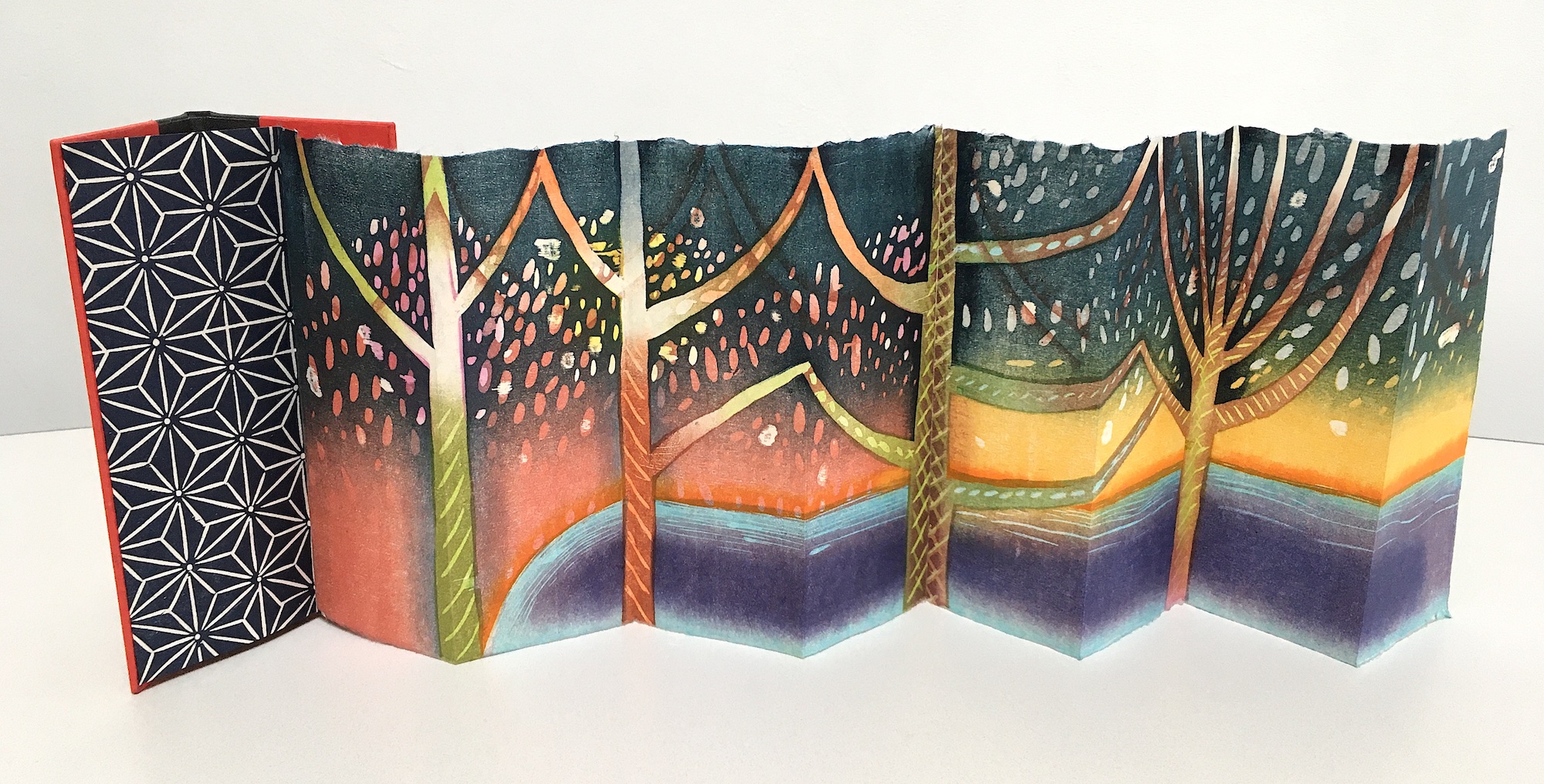 2021, woodcut, accordion folded into covered boards, 7.25” x 3” folded, 7.25” x 25” open