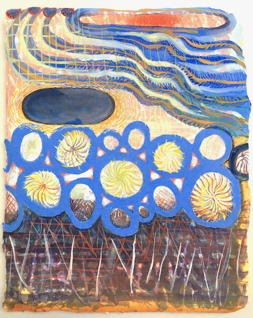 “Pinwheels”, 2021, unique gouache & pulp painting on handmade paper