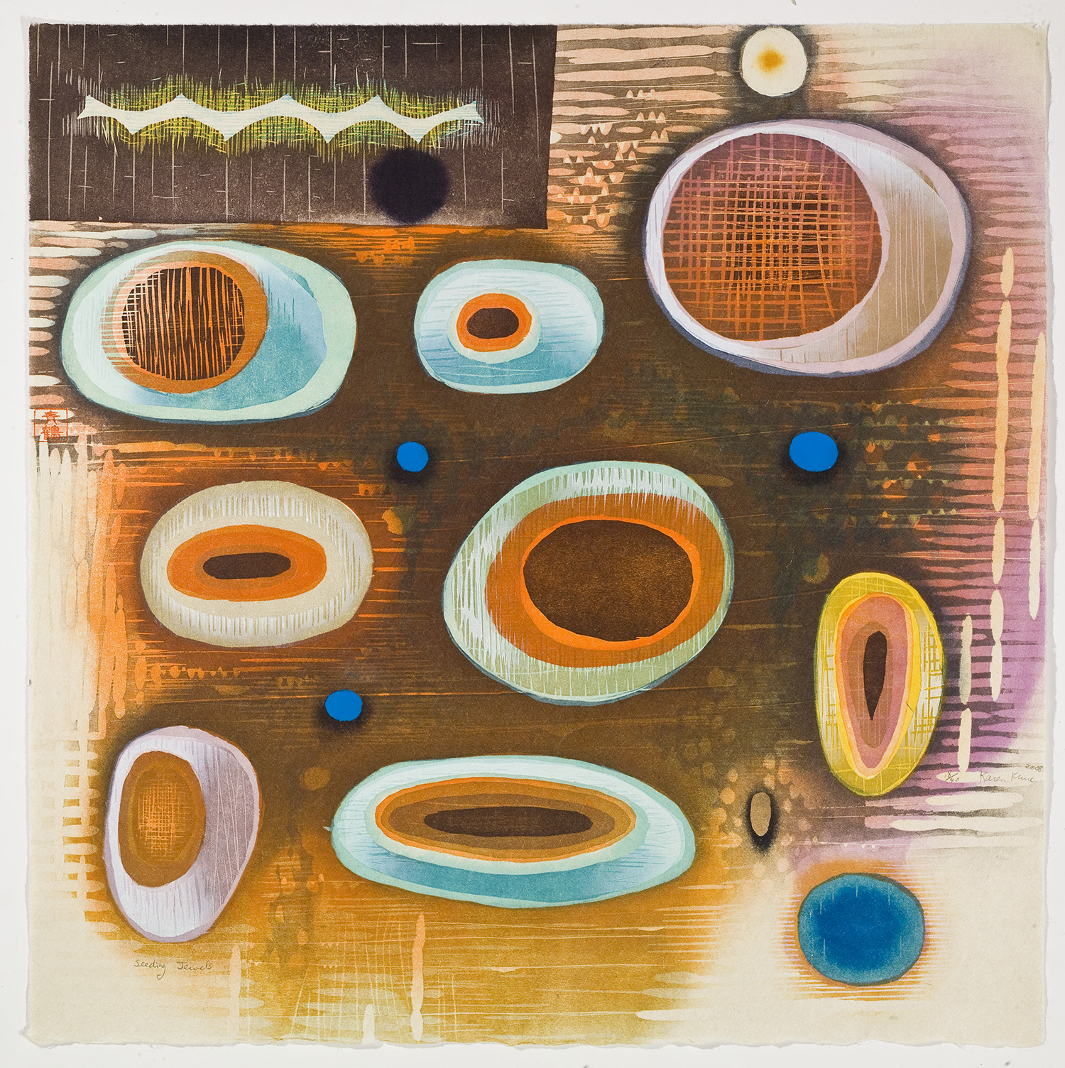 ‘Seedling Jewels,’ woodcut, 2008, 18″x18″