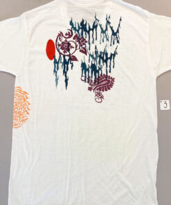Cotton T-shirt with multiple screenprinted colors & patterns, printing front & back.