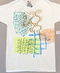 Cotton T-shirt with multiple screenprinted colors & patterns, printing front & back.